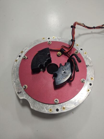 Then attach the original E-mag trigger plate and shaft to/through the rotor with longer (again) high grade structural screws that go all the way into the flywheel.