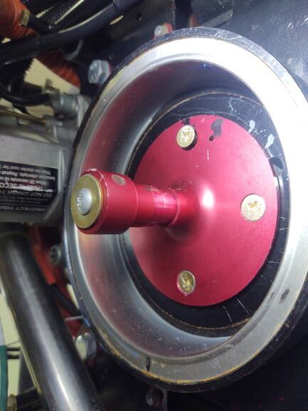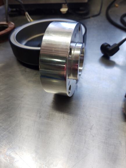 I’m still working on mounting the trigger magnet plate but am weighing parts while I go and the larger alternator and adaptor pieces will add around 5.3 pounds above the stock aerovee assembled weight. I put a bore through the center of the 1.5" spacer to cut some weight and likely could have taken a little more off the 4" O.D. but am happy with being around 5lbs and didn’t want to push it.