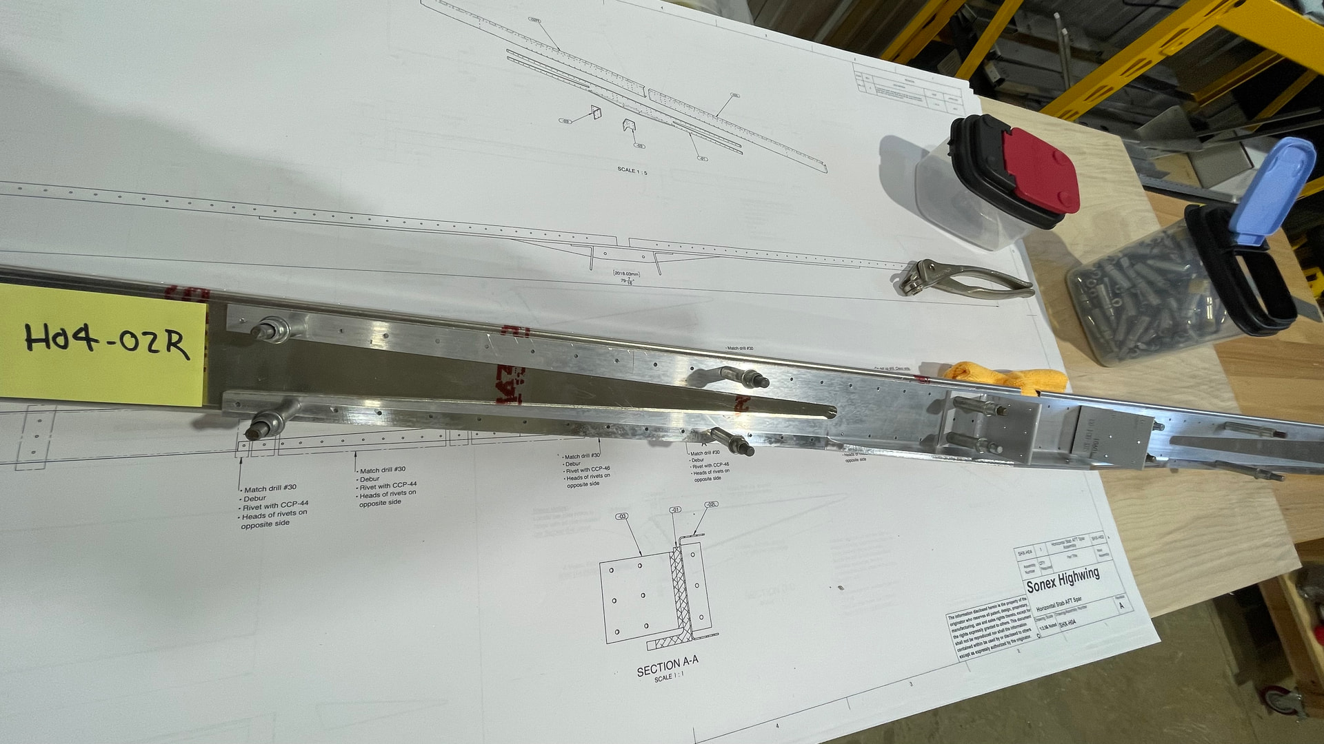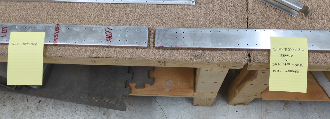 I decided a plan for the mislabeled Horizontal Stab rear spar parts. In review I ended up with two SHX-04-02R even though one was labeled SHX-04-02L