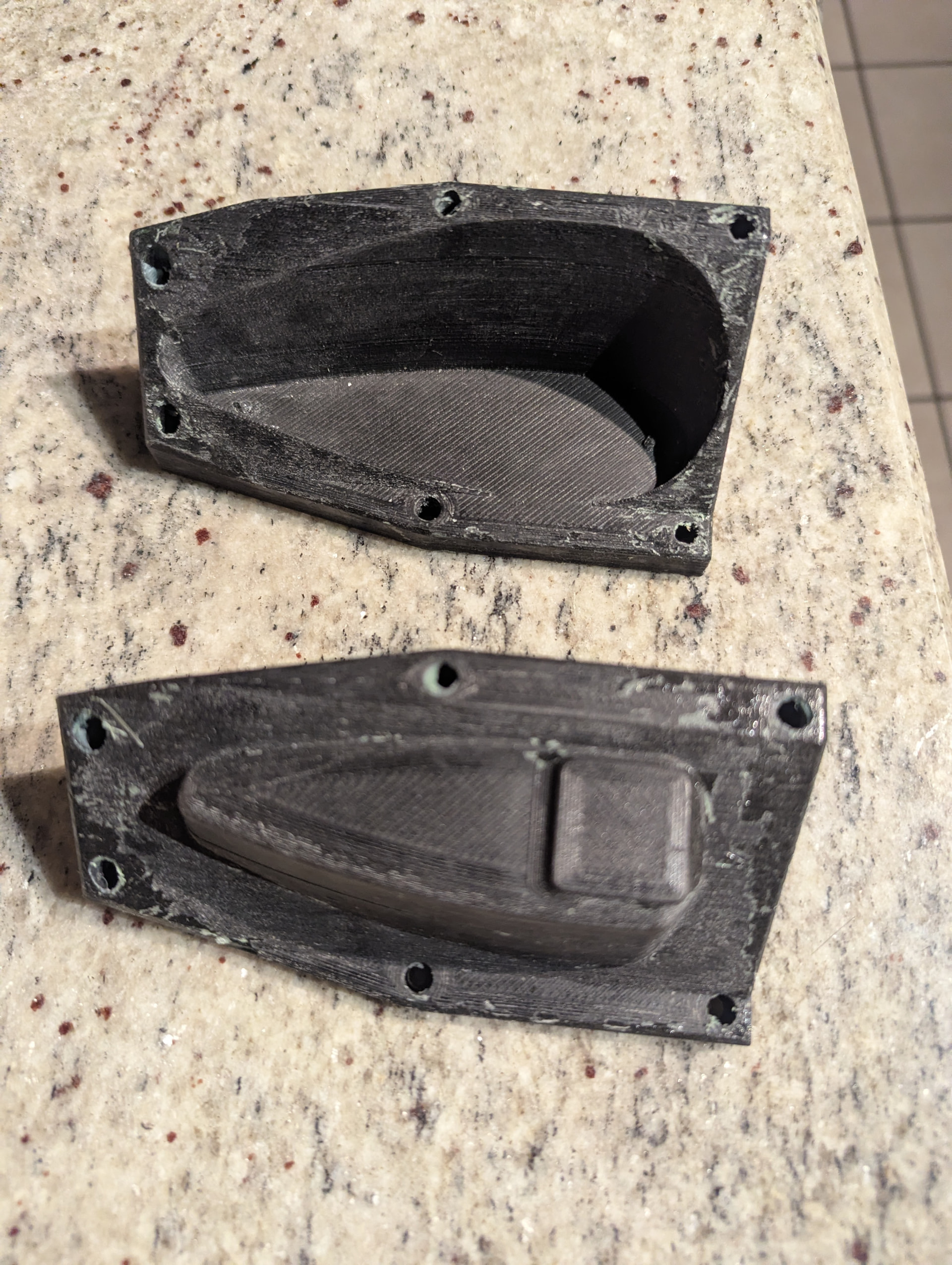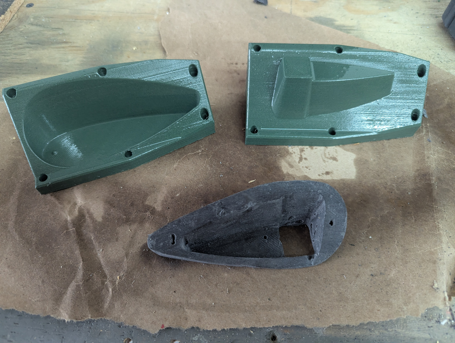 The last picture is the undamaged mold halves AFTER removing the part. This is by far the most exciting thing to me. The molds take forever to print and a lot less to prepare and fill them with composite material. So if the lay-up doesn’t look good, I can just jump right in and redo it again immediately without waiting two days for molds to print.