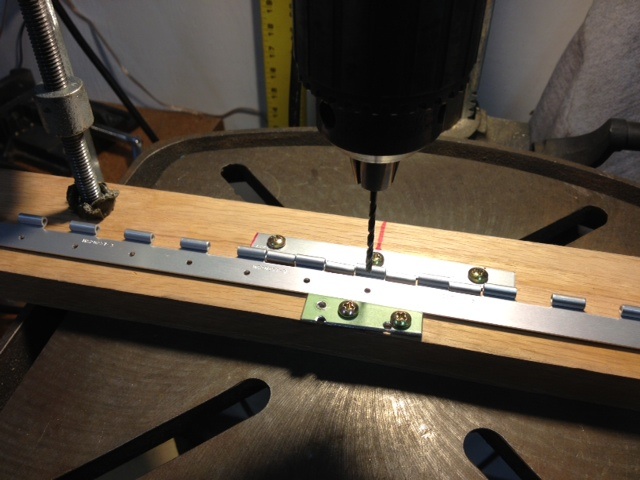Onex107 wrote:I recommend you buy an alum 3 ft. yard stick and drill #40 holes on each inch mark. Use this as a drill guide to predrill the hinges.