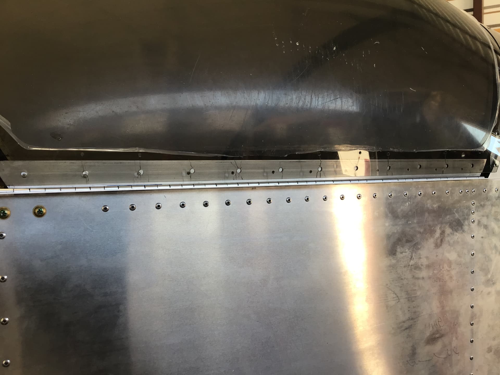 A second canopy from factory is expected this week; I have to redo since my first one has cracked (installed recently on my Sonex-B project, SNB0048). I’ve included some pics of the extensive cracking that has developed on the sides (right side in pics but both side areas are cracked horribly and even some cracking on bow areas). Suffice it to say I was not smart enough to keep thread cutting oil (used when threading for all machine screws) from getting on canopy, of course plans just say avoid Loctite but they would be better to say avoid anything! My own fault for not better testing prior to exposing plexiglass to the oil. Furthermore I’ve since done a more extensive test with scrap plexi under a bending pressure (with holes drilled similar to canopy) and have confidently concluded the cutting oil weakened the plexi which resulted in the prolific cracking. In my test, the plexi, with no oil exposure has never cracked to date while the oiled piece cracked, at a hole location, within a few hours. Cris at Sonex factory, recently told me factory gets no cracking, however they are adamant about keeping any thread cutting oil away from canopy during installation- sure would have been nice to know beforehand. Additionally , I also have always been concerned about the canopy sides bulging (initial discussion in this post). Sonex told me bulge is normal and that the sides should compress into the “sandwich” as depicted on the SNB-D01 drawing, sec E-E. This high pressure side area is what got me into trouble in the first place as I thought I’d need clecos to pull the sides into place (sandwich), thus I did the hole threading (using cutting oil) with the canopy in place - this would allow using clecos which were removed one at time as ea hole was threaded and a screw subsequently put in. BUT, I was wrong to use the oil and thread the holes in this manner, you MUST avoid any exposure to canopy, so whatever methodology is used, the machine screw holes must be threaded so canopy is not jeopardized with oil.