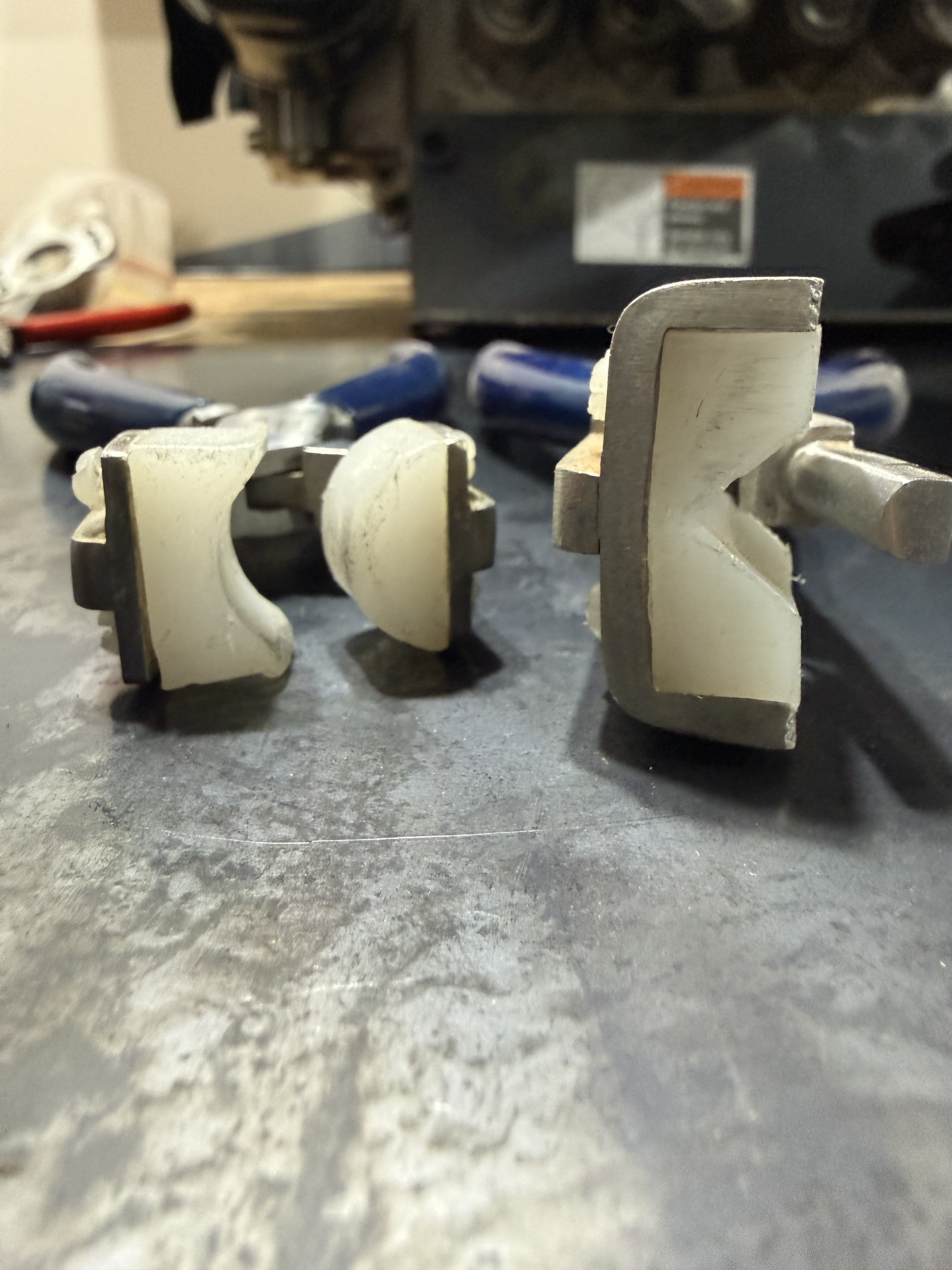 I then set up the router to route some divots into the sides of the forming blocks to give the metal somewhere to go.
