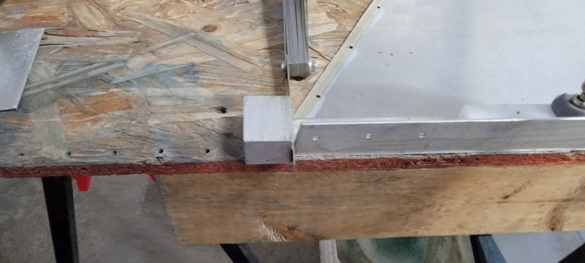 I don’t have my copy of the plans in front of me but I’m thinking that it goes between the lower joiner bracket (the T shaped one) and the floor. This takes up the gap since the plate sets on top of the angle. It goes where my finger is pointing but isn’t installed in this picture.