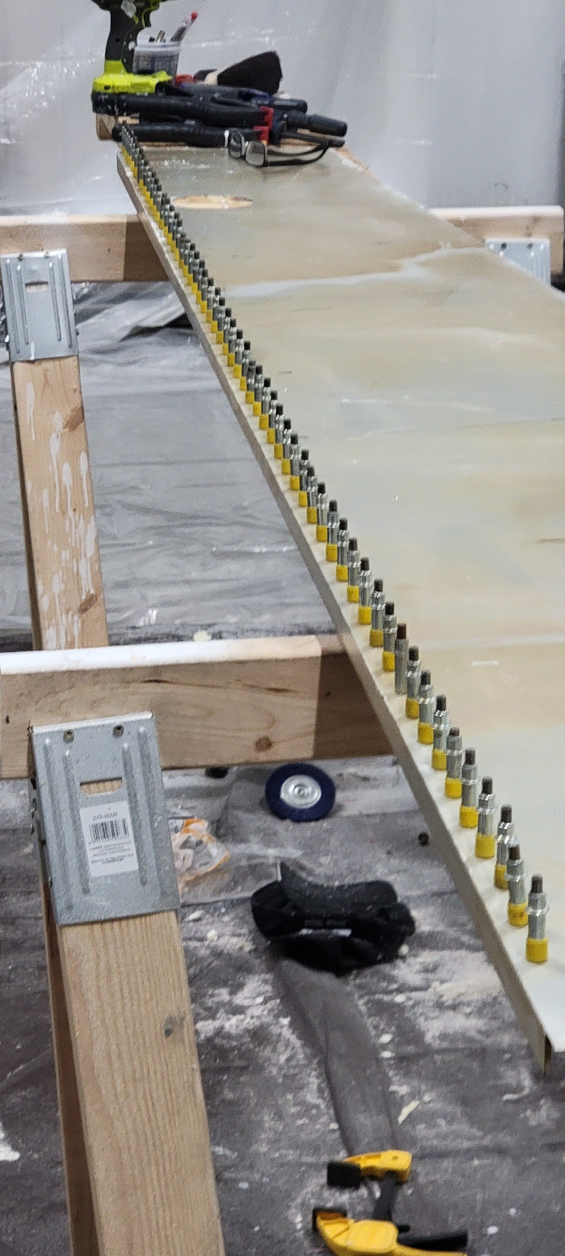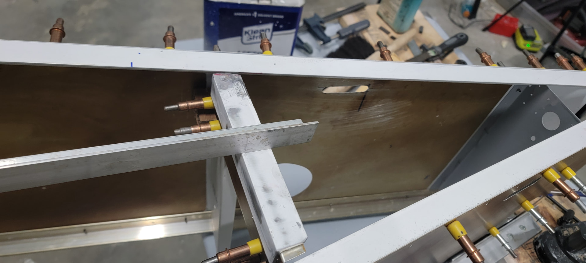 The basic tub was clecoed and a jig to square to the centerline was made and used.