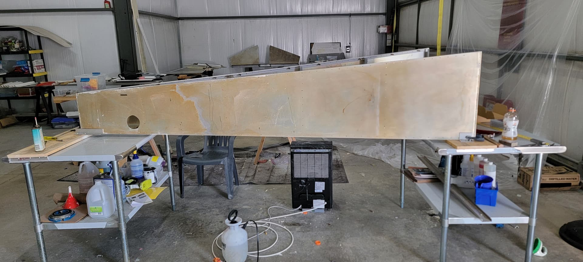 It’s been a while, So far in 2025, I have been doing surface prep on various parts & skins. The first thing I do is use a random orbital sander to remove the bulk of the surface corrosion. Some of these parts have been sitting around for 15 years and have a considerable corrosion (no white corrosion) built up. Following that, I wash the parts with dishwashing detergent, followed by a rinse in distilled water and a wipe down with acetone. The next step is an acid etch to remove the remaining corrosion, followed by a rinse in distilled water with baking soda added to neutralize any acid. Next another rinse in distilled water to remove any traces of the baking soda. Following that, the Alodine is applied and another rinse in distilled water.