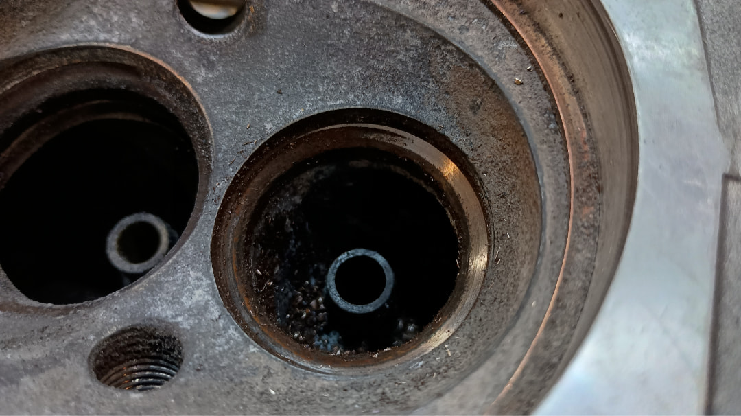 The little black T handle is basically a 1/2” nut driver, but a really deep one. After cutting a while, most of the seat cleans up, but one part doesn’t yet.
