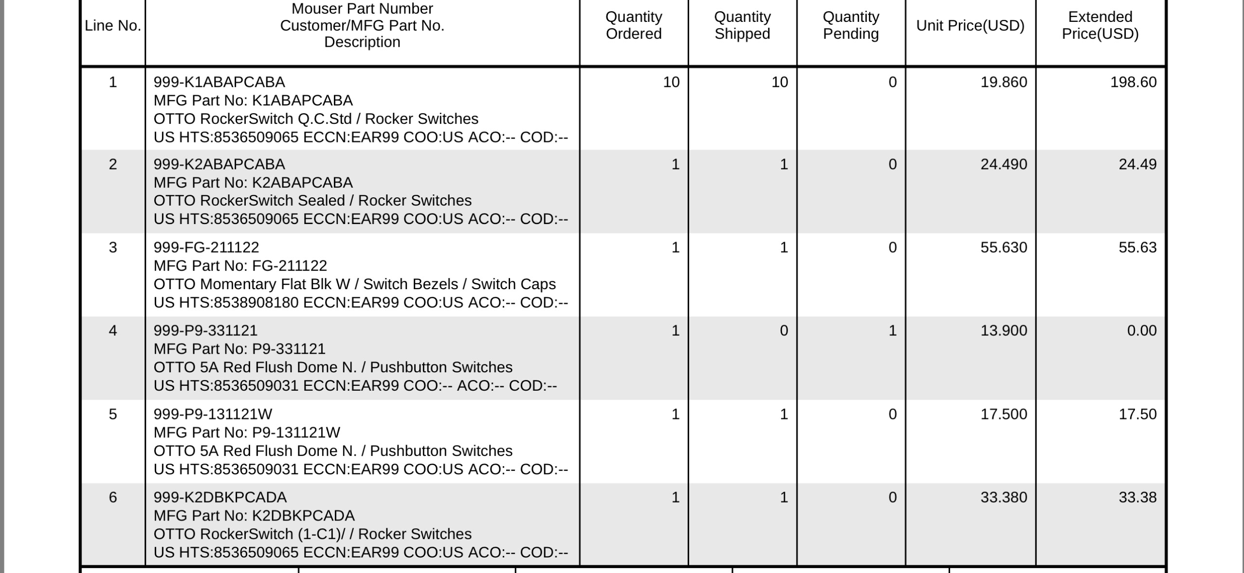 A screenshot of my Mouser invoice is attached to give you some ideas.