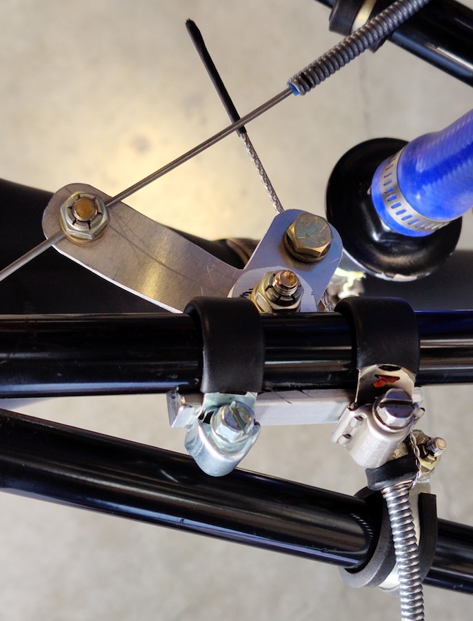 First off I needed to fabricate a cable reversal bell crank. I built it such that 3" pull on the control is 1.5" push on the aeroInjector. Sorry the pictures are so large, you’ll have to click on them to see the full image.