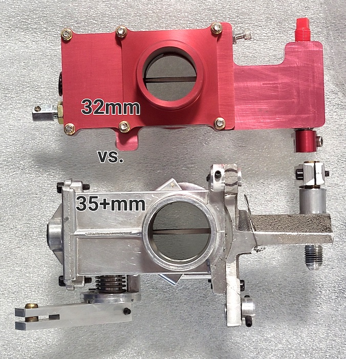 From this angle these carbs look about the same in size. But the AeroInjector feels about half the weight of the RevFlow carb.
