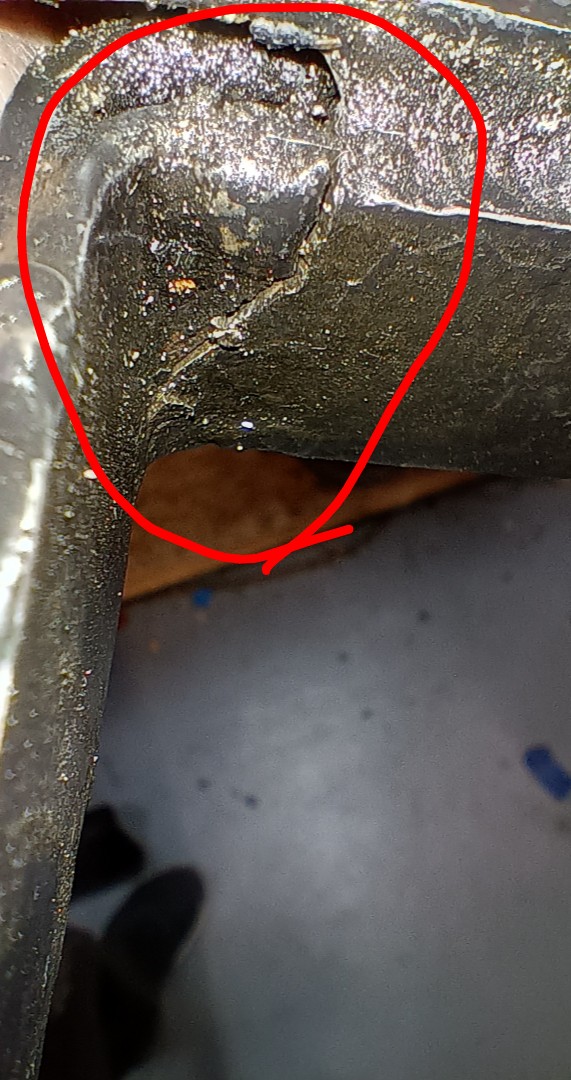 I welded up those cracks, put some doublers going around the corner, and it didn’t crack anymore. But I think it still yielded as the angle of the forks vs the pivot is not perpendicular, and I think it should be. This picture below is the same bracket that I just took out.