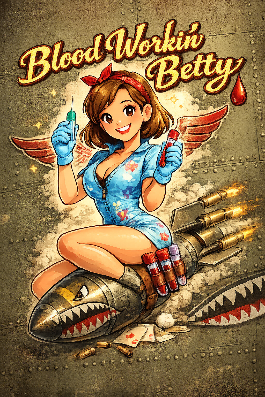 I’ve always said that since I’ve drawn blodd so many times while working on this that I’d name my plane “The Phlebotomist”. Not going to actually do this, but here is an image created by chat gbt.