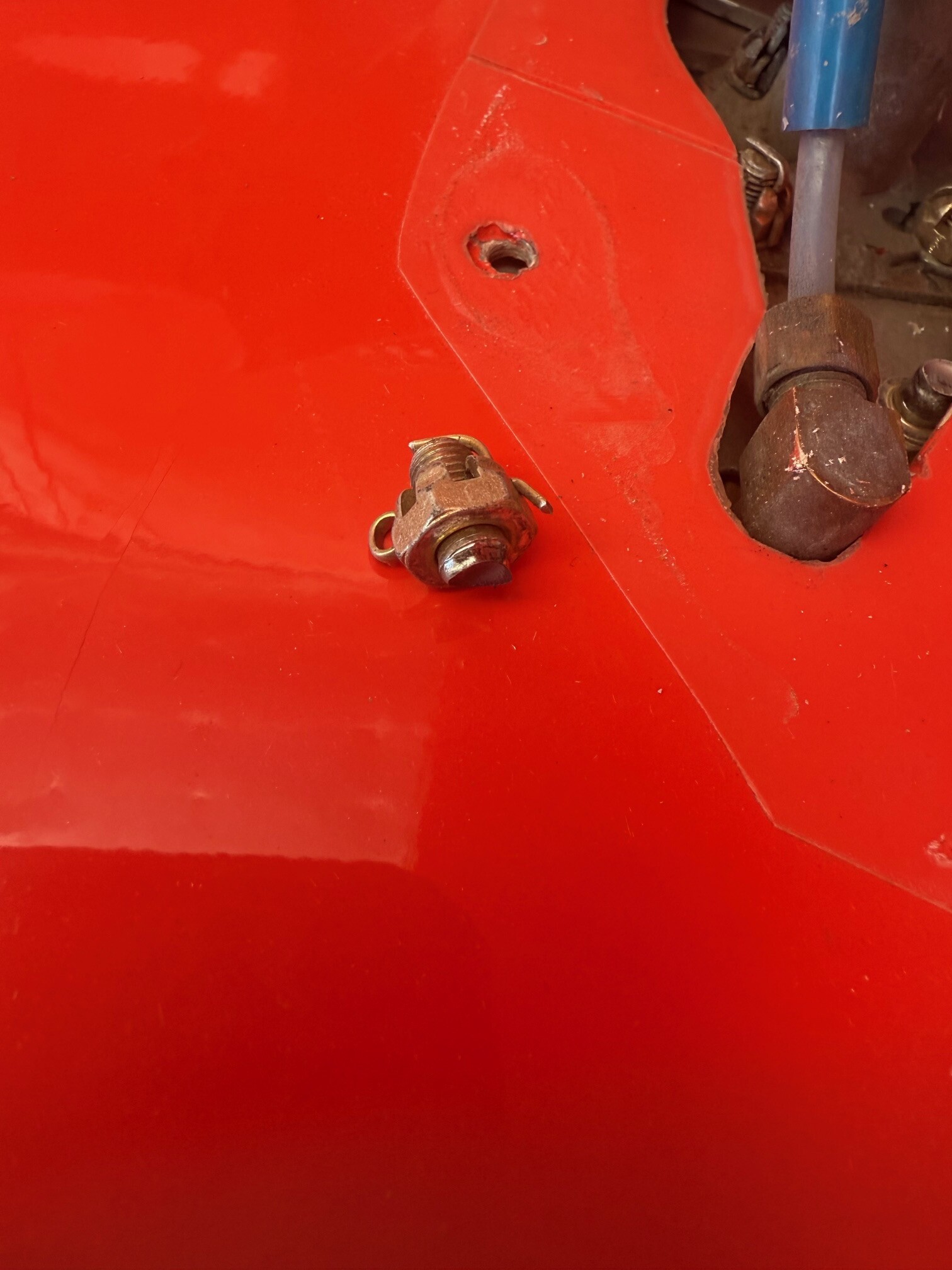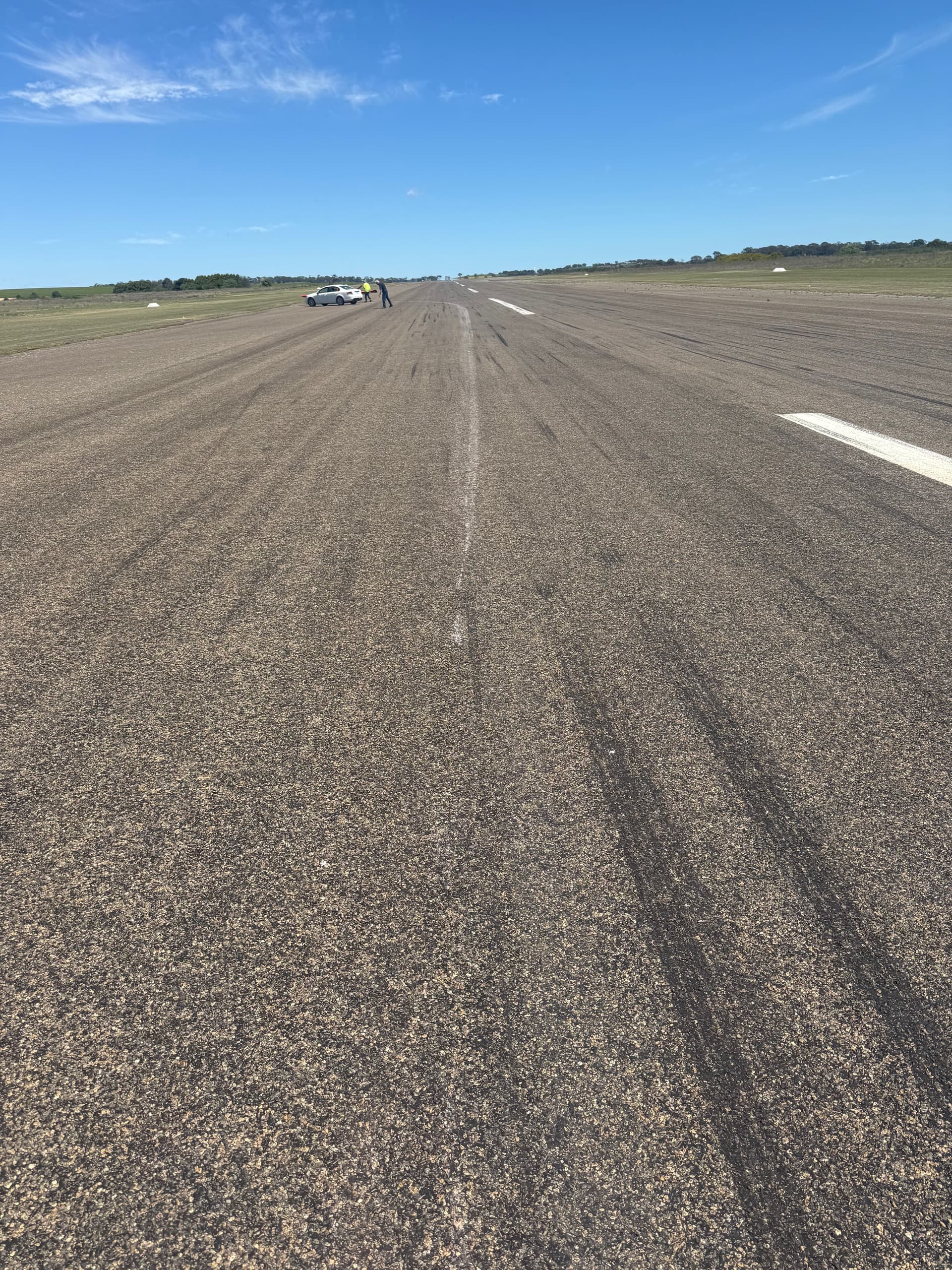 Hopefully the damage is limited to what is seen in the picture. Second picture is the wheel pant skid mark on the runway, looks like white powder not the black tyre marks.