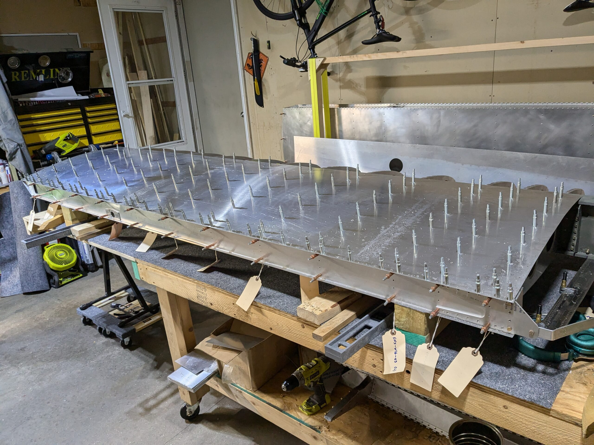 I did the tops first. They are more critical for aerodynamics and aesthetics, so especially for riveting if there is any funkiness make sure it ends up on the bottom.