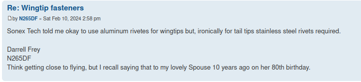 Really? Are they actually prohibited or discouraged, or just not mentioned as an alternative? I did mine with aluminum pops and they appear to be fine…but haven’t analyzed the stresses.